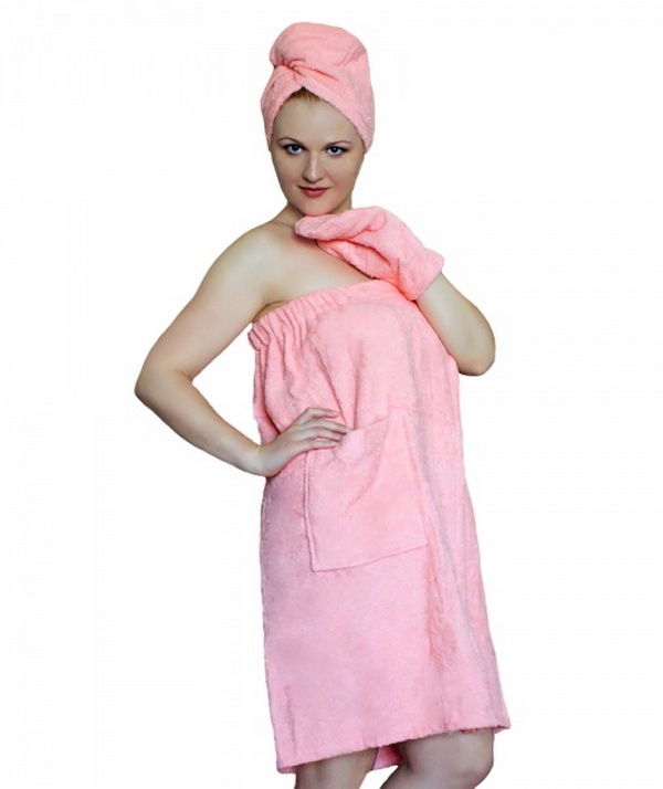 САУНА (БАННЫЙ КОМПЛЕКТ) МОНИКА включает в себя чалму, юбку и рукавицу.  Рукавичка предназначена для безопасного прикосновения к горячим предметам ковшам, тазам. Но чаще всего ей пользуются для массажа тела.  Специально пошитая юбка заменит неудобное полотенце, которое постоянно нужно придерживать рукой, чтобы не сползало. Все предметы, которые входят в банный комплект изготовлены из натуральных природных материалов. Купить Банный комплект для сауны Моника на нашем сайте можно в различных расцветках.